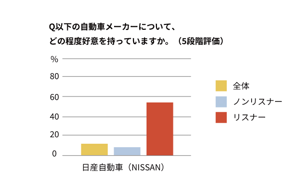 さらに最新の調査では、番組リスナーはノンリスナーと比べて日産自動車への好意度がおよそ7倍も高く、次の車を買う時に日産自動車を選ぶ可能性も高いことが明らかになっています。