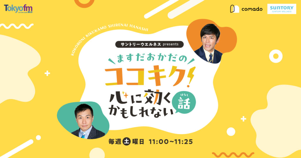 サントリーグループのヘルスケア事業会社で、健康食品・サプリメントや美容関連商品の企画・ダイレクトマーケティングを中心にした販売を行い、『心も体も、健やかで美しい状態へ』を理念としているサントリーウエルネス。ラジオ番組「サントリーウエルネスpresents ますだおかだのココキク!心に効くかもしれない話」をTOKYO FMで展開することによる、狙いと成果、運用の要諦を伺いました。